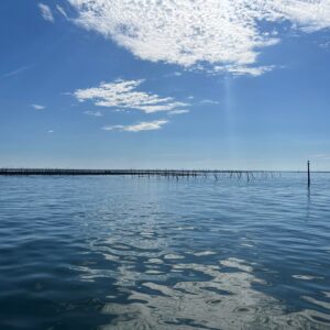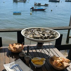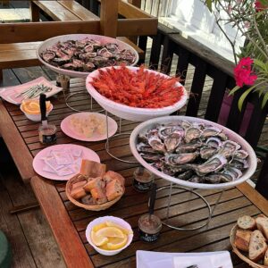 Pause dégustation d’huîtres et de crevettes dans des cabanes ostréicoles au petit village du Canon. Le bonheur…
