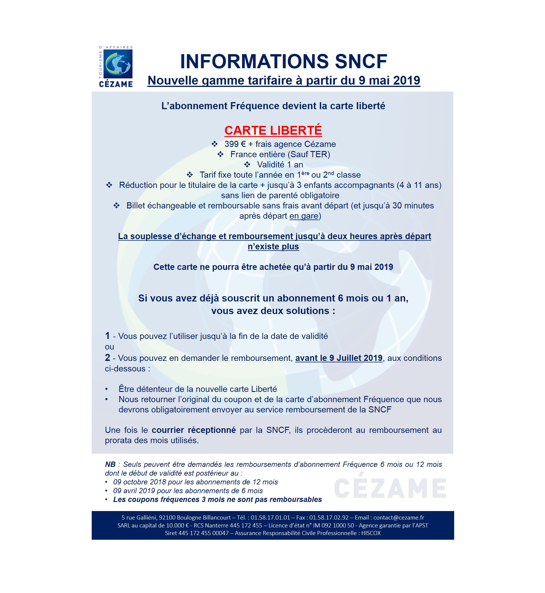 INFORMATIONS SNCF – Nouvelle Carte Liberté